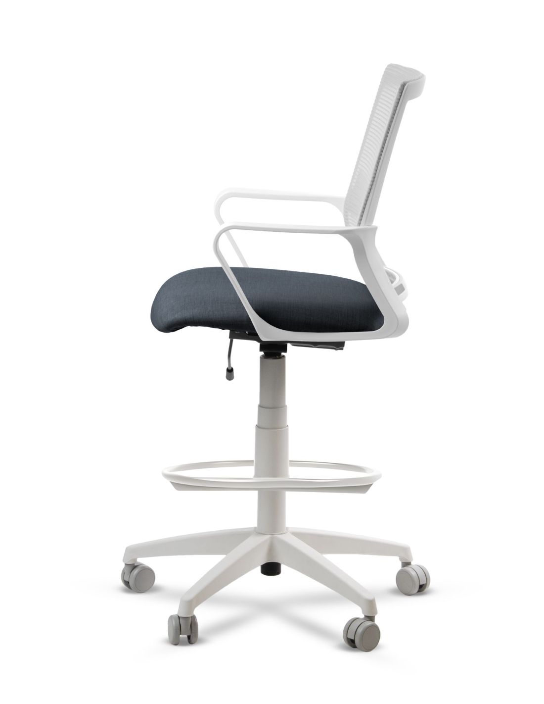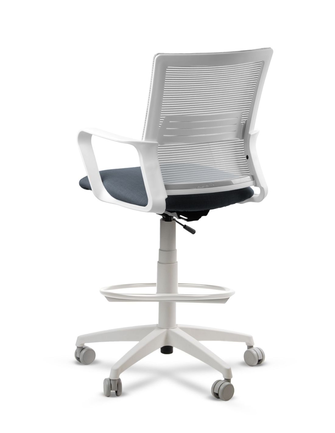 - Respaldo tapizado en tela de red mesh negra.
