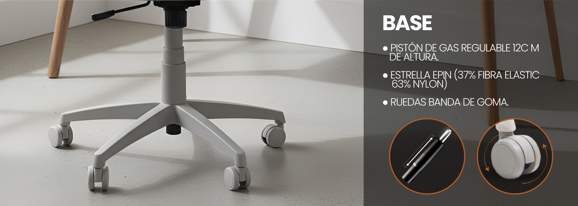 • Altura Asiento: Altura min. 47 cm / Altura max. 56 cm