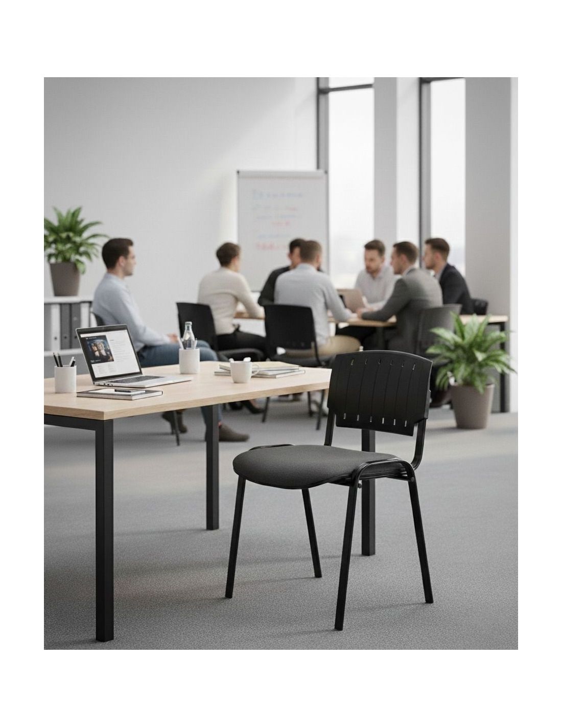 La silla PRISO con respaldo plástico y asiento tapizado acolchado con espuma de alta densidad. Esta silla se caracteriza por su alta resistencia y su gran calidad gracias a su estructura metálica de caño oval 14 x 30, conformado y soldado con sistema MIG y su asiento tapizado con espuma de 22 kg.