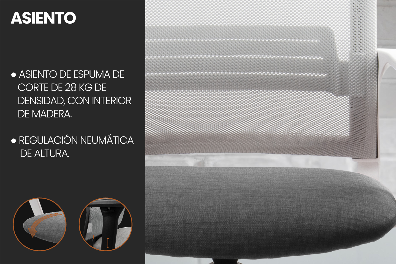 • Profundidad del asiento: 51 cm.